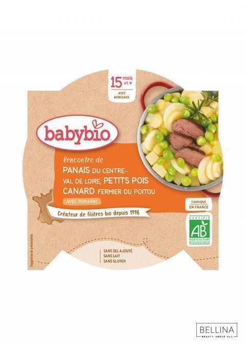 Ова е органски оброк создаден во комбинација со пашканат и компири кои се одгледуваат во долината на реката Лоара, како и со грашок и месо од патка од регионот Поату-Шарент од каде го добива целиот свој вкус. И бидејќи Babybio има око за детали, додадовме и зачин од рузмарин за комплетно уживање!