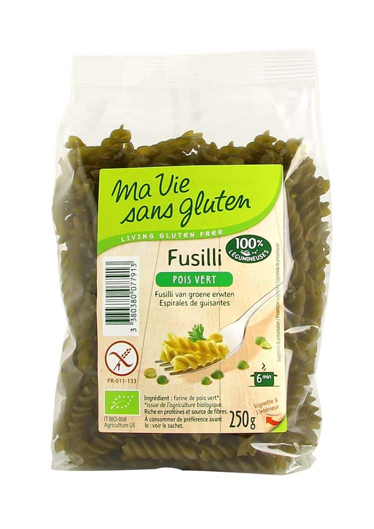 100% тестенини од грашок во вашата чинија! Благодарение на уникатниот процес на производство, оригиналната боја на грашокот е зачувана. Овие фусили се богат извор на растителни протеини коишто брзо се апсорбираат.