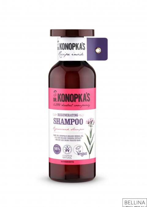 Природен сертифициран шампон за коса на база на органска врбинка, кој ја обновува косата. Дополнително во составот го содржи и органското хербално масло №52 по оригиналните рецепти на Др. Конопка. Благодарение на екстрактот од врбинка, овој шампон внимателно го обновува влакното, го зајакнува, хидрира и со тоа ја ревитализира сувата и фарбана коса.
