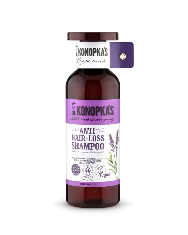 Шампонот против опаѓање на косата на Dr. KONOPKA’S содржи масло од лаванда кое ги зајакнува корените на косата и ѝ дава обновен сјај. Овој шампон е богат со витамини, ја зајакнува косата и е идеален за оние што имаат проблем со опаѓање на косата.