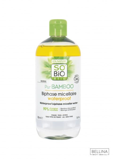 За оваа водоотпорна двофазна мицеларна, SO’BiO étic® одбраа органски бамбус од 100% француски сектор.