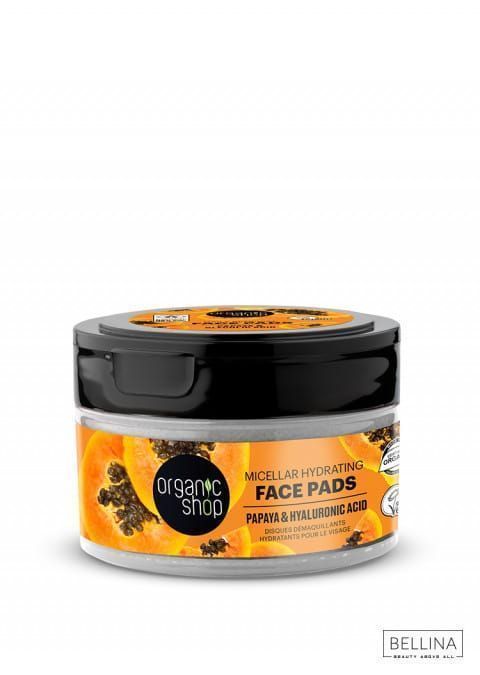 Мицеларни памучни вати со екстракт од папаја и хијалуронска киселина. Вратете го природниот сјај на вашата кожа додека ја отстранувате вашата дневна шминка. Органскиот екстракт од папаја, богат со природниот ензим папаин, совршено ја ексфолира површината на кожата за да го поттикне нејзиното обновување, оставајќи порамномерен тон на кожата. Хијалуронската киселина совршено ја навлажнува кожата, оставајќи ја кадифено мека и мазна.
