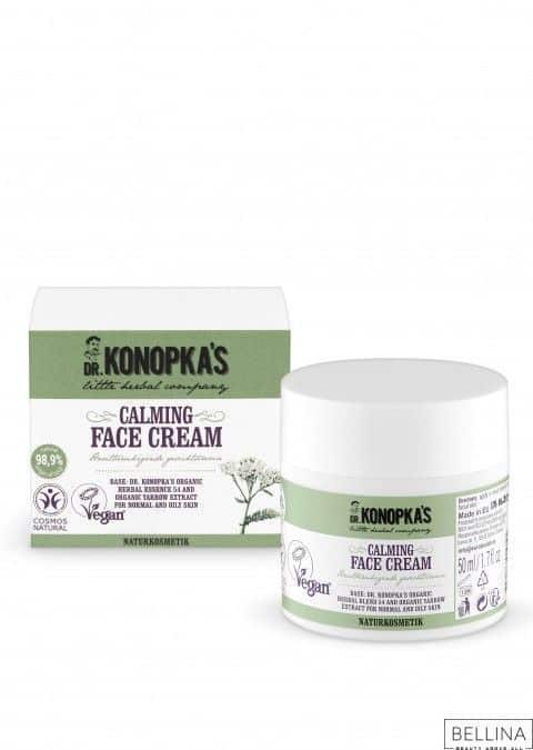 Смирувачка крема за лице, која го содржи етеричното органско масло N54 од Др. Конопка. Збогатена со витамини и минерали, кои ја хранат кожата и ѝ даваат мазен и кадифен изглед. Комбинирано со органска ајдучка трева, го спречува сушењето и појавувањето на иритации на кожата и го задржува прекрасниот блесок.