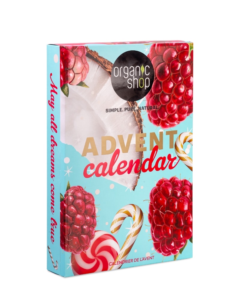 Адвент календар кој носи различни изненадувања, 24 дена. Секој ден откривате нов производ за лице, тело или коса. Се што ви е потребно за да уживате 24 дена, носејќи мирни моменти во најубавиот период од годината. Отворете ново прозорче и уживајте во природните производи на Organic Shop.