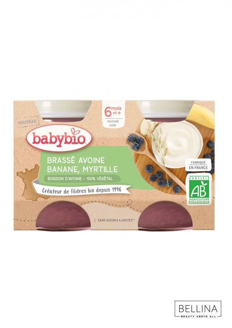 Органски безглутенски густ јогурт од млеко од овес со банана и боровинки без додаден шеќер за 6+ мес