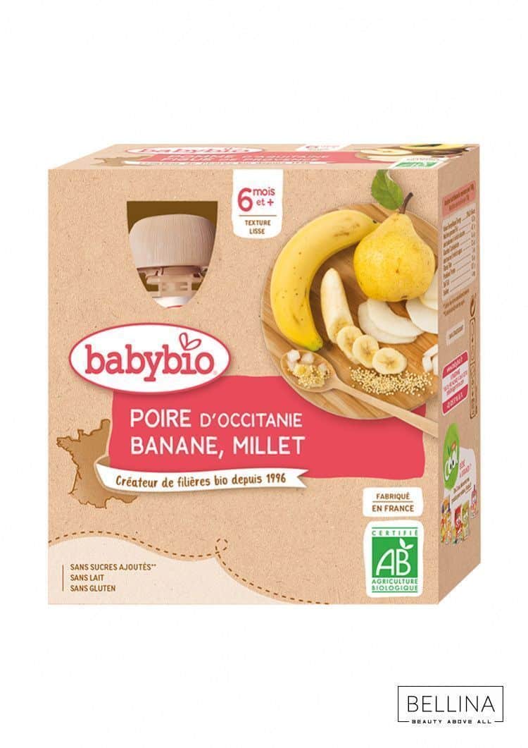 Колку пријатно изненадување за вашето дете со вкусната комбинација на круша од Окситанија и еквадорска банана! Од органското земјоделство, нашите плодови се среќаваат со просо, житарка која ќе го воодушеви вашиот млад гурман.