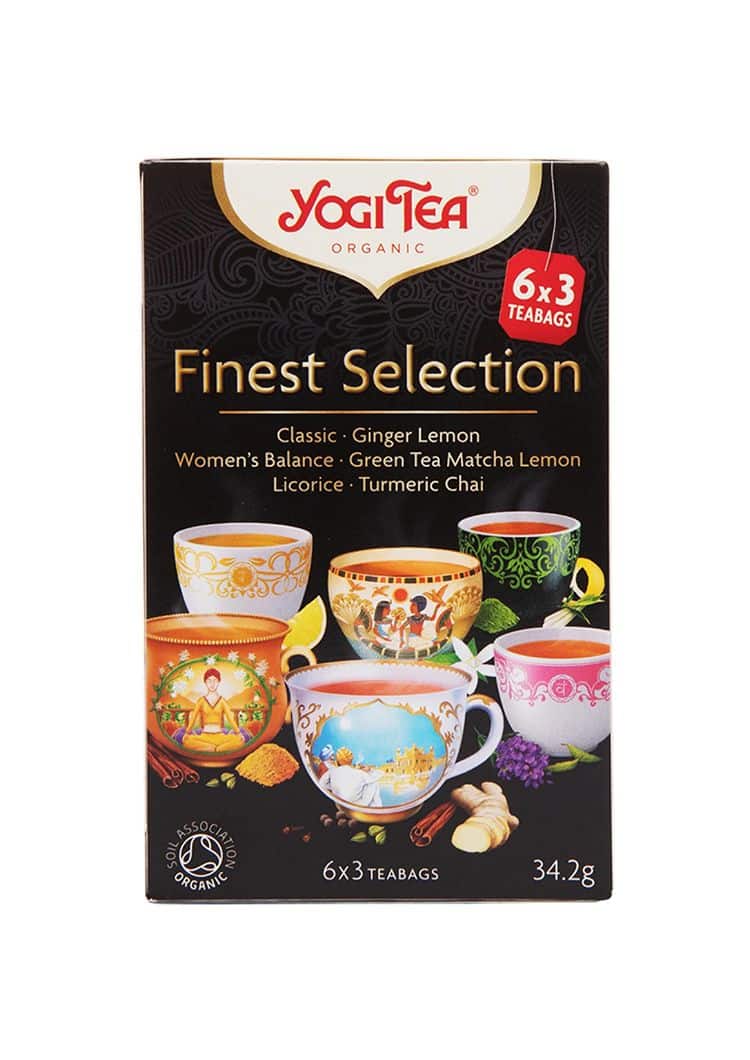 Органскиот чај Finest Selection од YOGI TEA содржи по 3 ќесички филтер чај од: