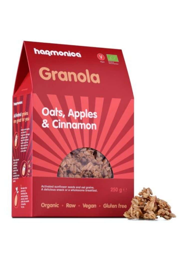 Оваа гранола во Harmonica ја подготовуваат со активирање на семето – за да можете сами да го искористите богатството од хранливи материи. Потоа, следи процес на бавно и нежно сушење. За разлика од печењето, сушењето на гранолата значи дека состојките остануваат сирови и ги зачувуваат нивните хранливи својства. Семките од сончоглед се активираат(натопуваат) и потоа нежно и полека се сушат речиси 24 часа. Потоа се мешаат со останатите состојки и содржината се пакува.