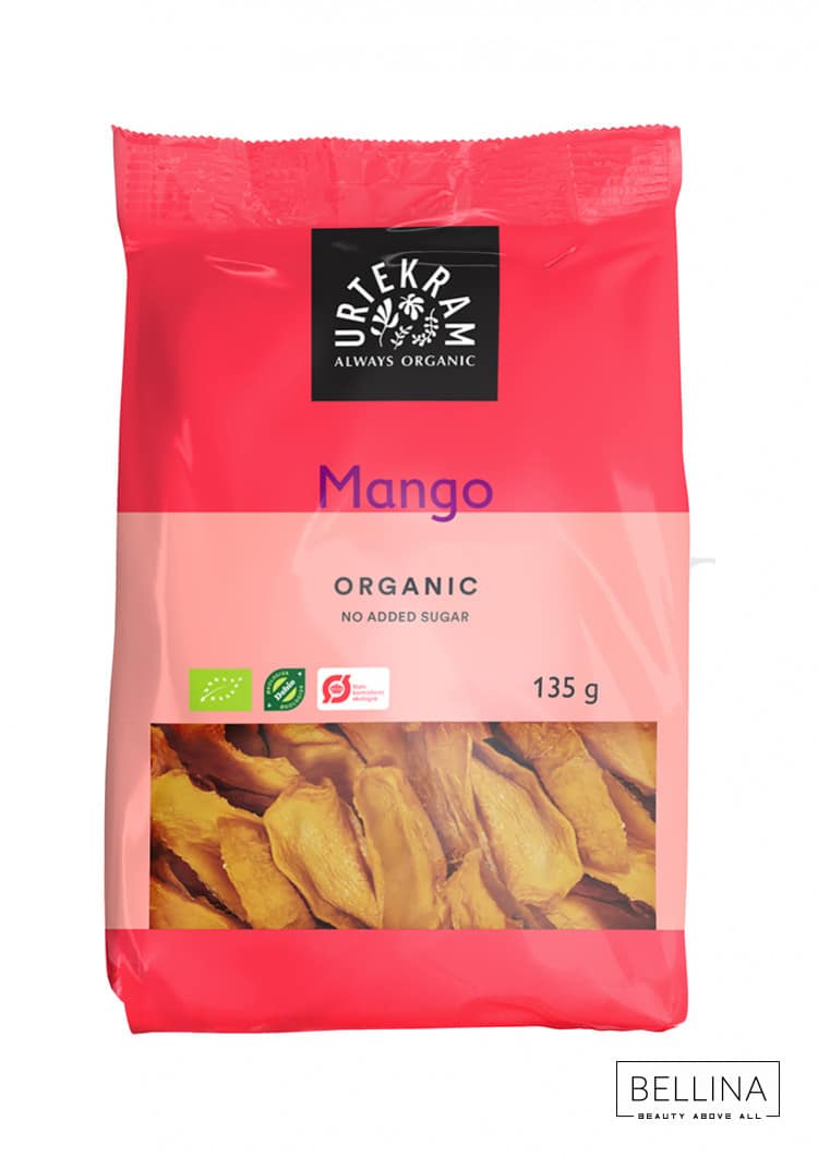 Oрганското суво манго на Urtekram се состои од кисело-слатки парчиња од сушено манго кое одличен избор како закуска или како додаток во варени јадења, заедно со кокосово брашно. Мангото како овошје е најблизок природен одговор на гумените бомбонби – има апсолутно прекрасна сладост. Нашето органско манго нема додаден шеќер и содржи природна содржина на шеќер.